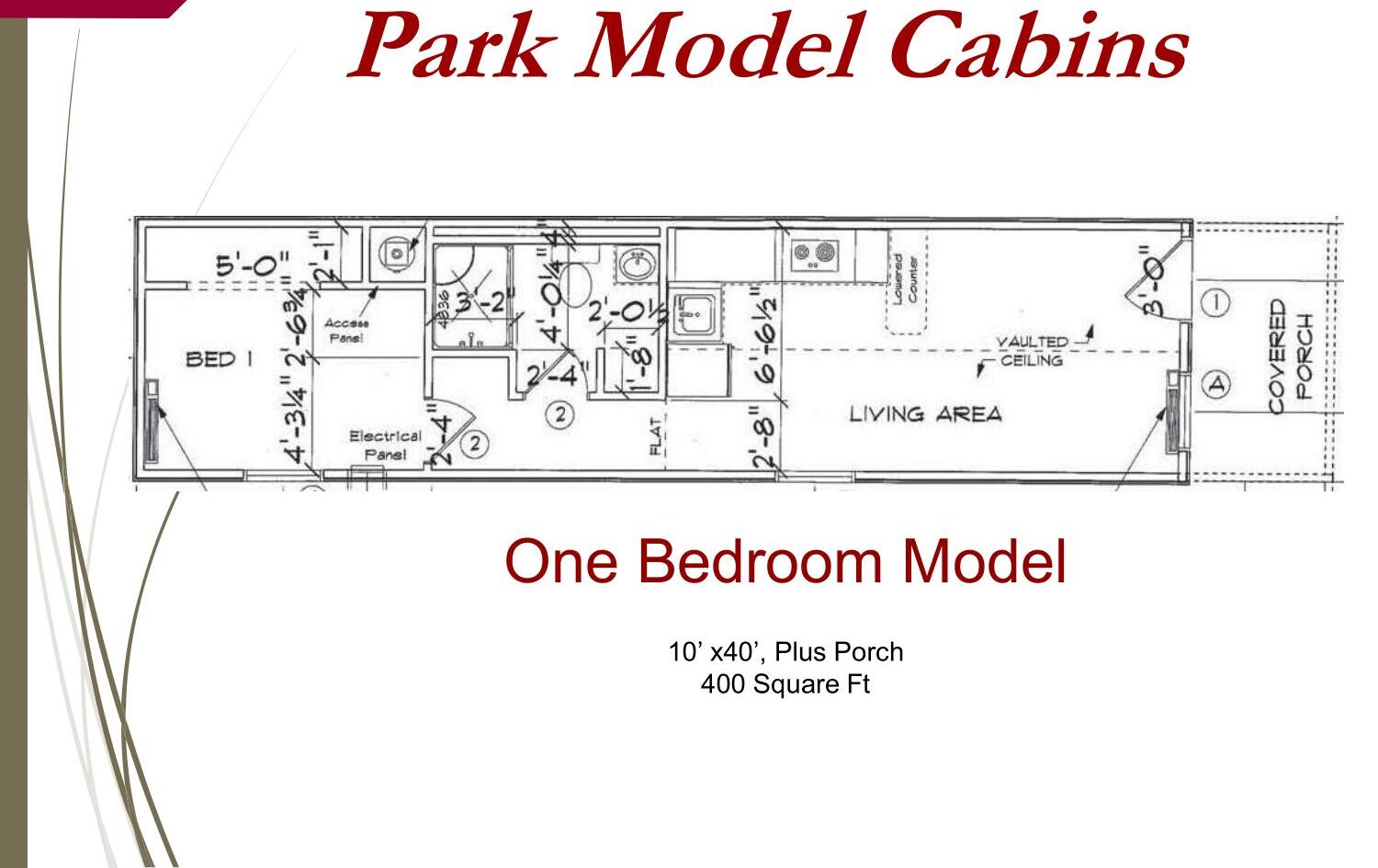 Our park model cabins are designed to provide you with comfort and convenience while withstanding harsh weather conditions.